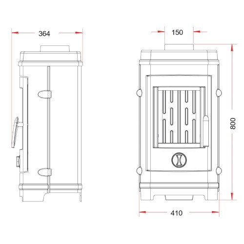 - Diamètre du raccord de la cheminée : 150 mm